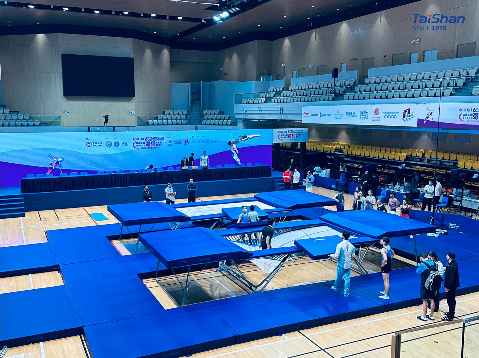 In order to ensure the excellent performance of gymnasts, Taishan Sports’ professional service team went to Hong Kong in advance to prepare for the installation and debugging of the competition venues. The state-of-the-art gymnastics equipment provided by Taishan Sports will shine in the competition.