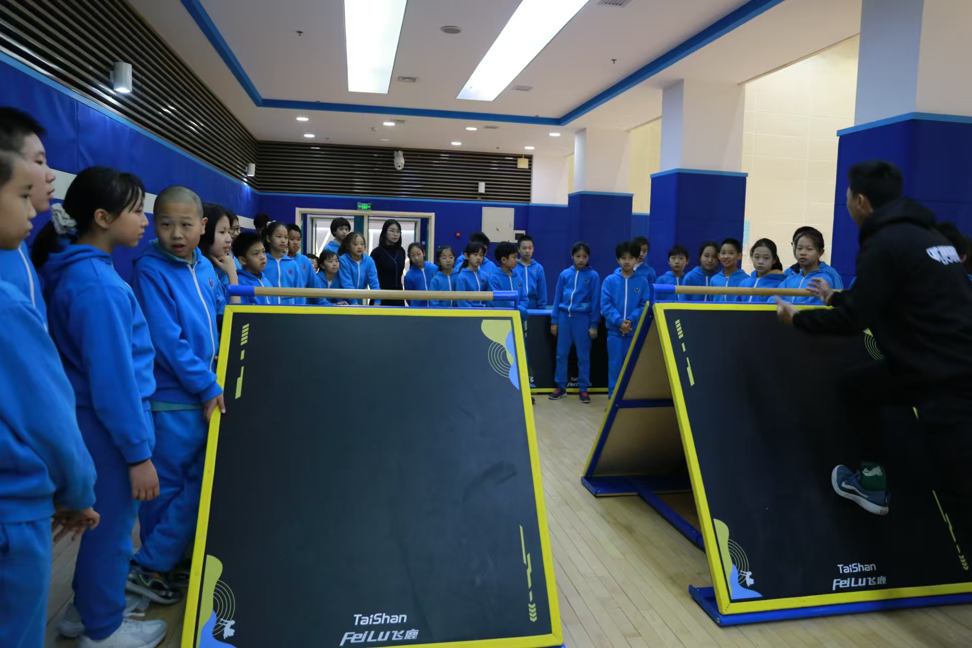 12月19日,全国政协教科卫体委员会委员履职“服务为民”冠军思政课活动,在北京市东城区史家胡同小学举行。其中的亮点环节,就是集中展示、参观、并让同学们亲身体验乐鱼体育新款校园跑酷器材。