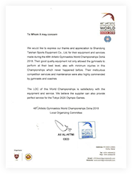 100多项产品分别通过了国际田联、体联、柔联、拳联、跆联、摔联、足联、曲联和自行车联盟等协会认证。