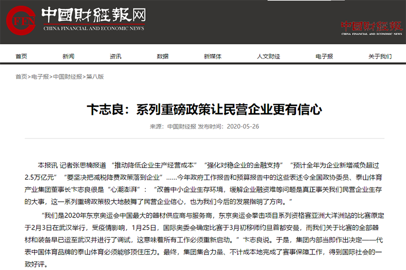 • 消费日报:全国政协委员卞志良--让奥运品质的体育用品全民共享