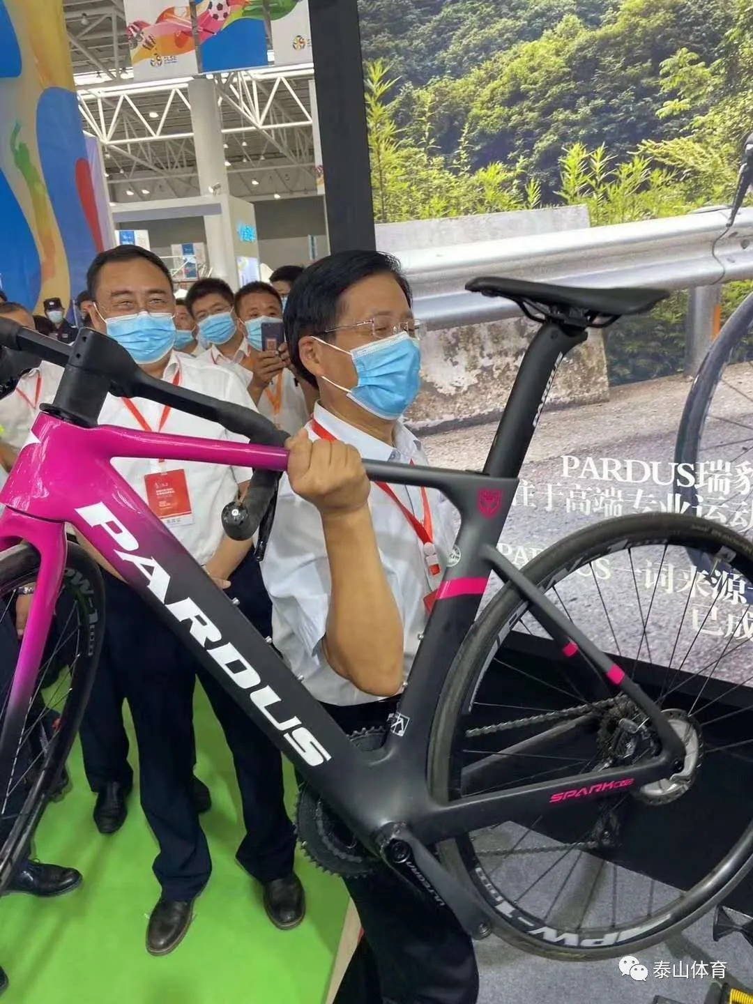 随后,山东省副省长孙继业一行在乐鱼集团常务副总裁卞国峰的陪同下来到乐鱼体育所在场馆进行详细考察,对于乐鱼瑞豹碳纤维自行车、乐鱼体育工程等产品与项目进行深入了解。期间,孙继业副省长饶有兴致的对于乐鱼瑞豹进行详细了解,特别关注获得"中国优秀工业设计奖金奖"的乐鱼瑞豹全碳变速互换计时车产品的具体情况,并亲自单手提起具有奥运赛场征战经验的碳纤维自行车。他表示:"山东省委省政府将积极推动体育产业列入我省的支柱产业,鼓励企业制定长期发展战略规划,通过打造体育产业龙头企业,形成一个迅速爆发的体育产业生态。期待乐鱼集团充分发挥自身国际资源、科技创新、标准制定等核心优势,不断做大做强,让山东体育产业的优势地位凸显的淋漓尽致,形成山东体育产业集群。"