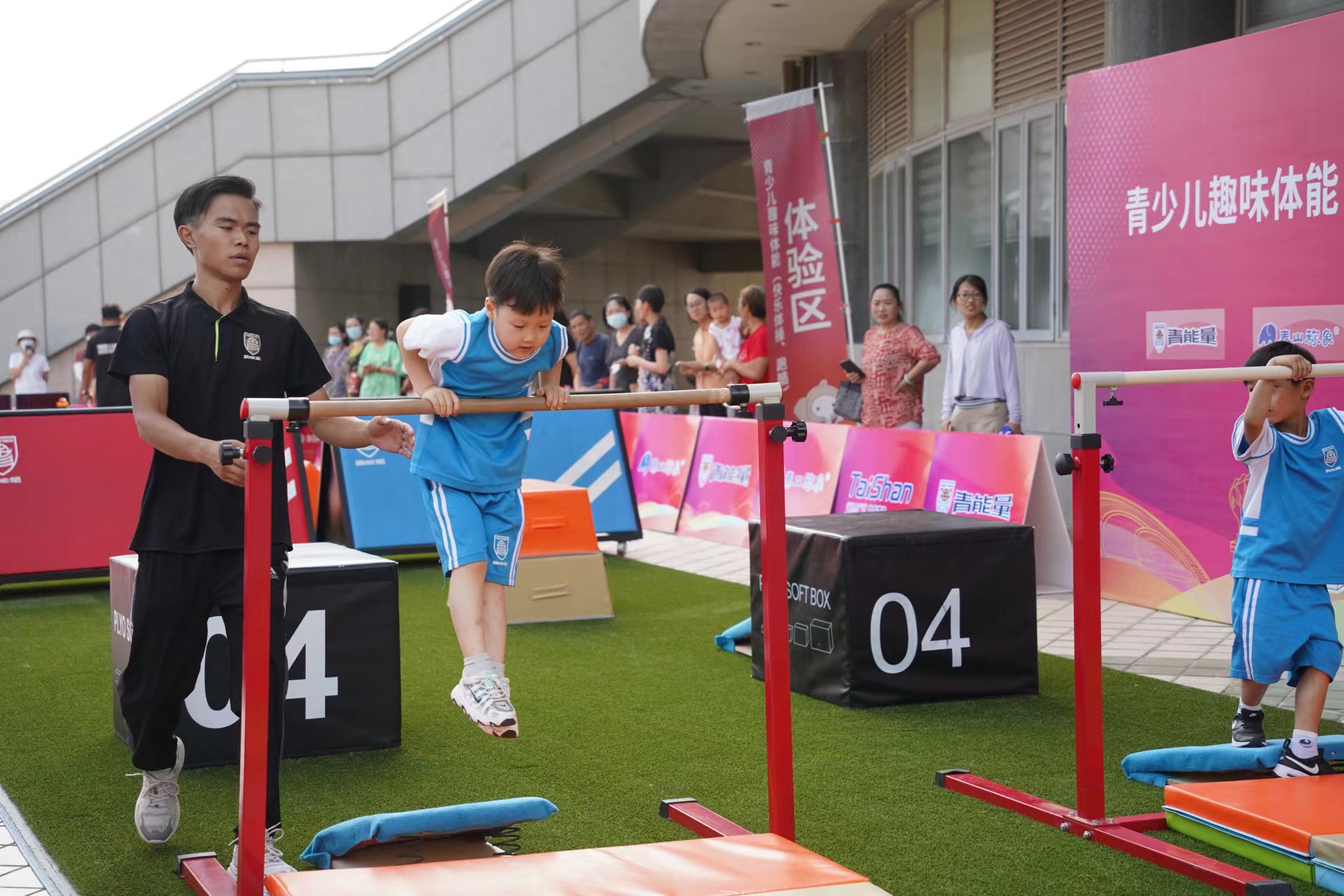 7月18日,2022年全国青年体操锦标赛暨全国青年体操U系列锦标赛开赛倒计时第二天!在德州体育馆比赛场馆外的展示区,由本次赛事承办方乐鱼体育,携旗下运动品牌青能量、乐鱼称象、称小象、TCPC跑酷学院等多个品牌联合打造的儿童快乐体操和跑酷展示,成为德州全民参与体操赛事的新亮点。