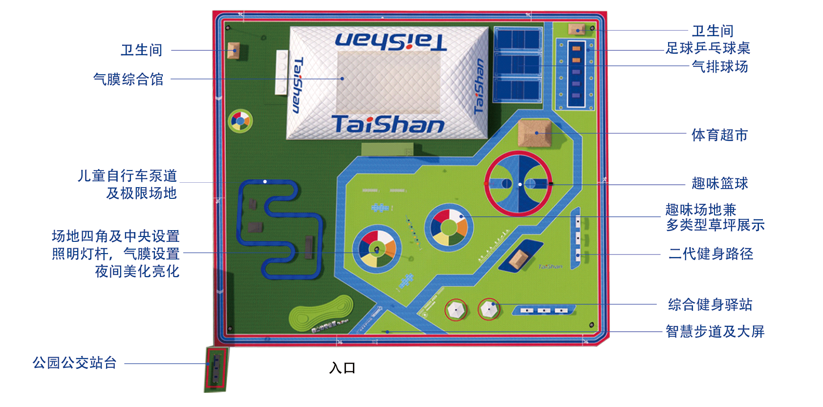 在场地铺设上,均采用乐鱼新材料功能人造草铺设,全方位保证运动安全和环保;气膜式篮球综合运动馆,内部设置2片篮球场、6片乒乓球场地及1片网球场。网球场同时套线4个羽毛球场地。场馆内可以满足体育运动,体育教学及群众比赛需求。从场馆到运动超市、智慧体测小屋,全部采用可装配式建筑。